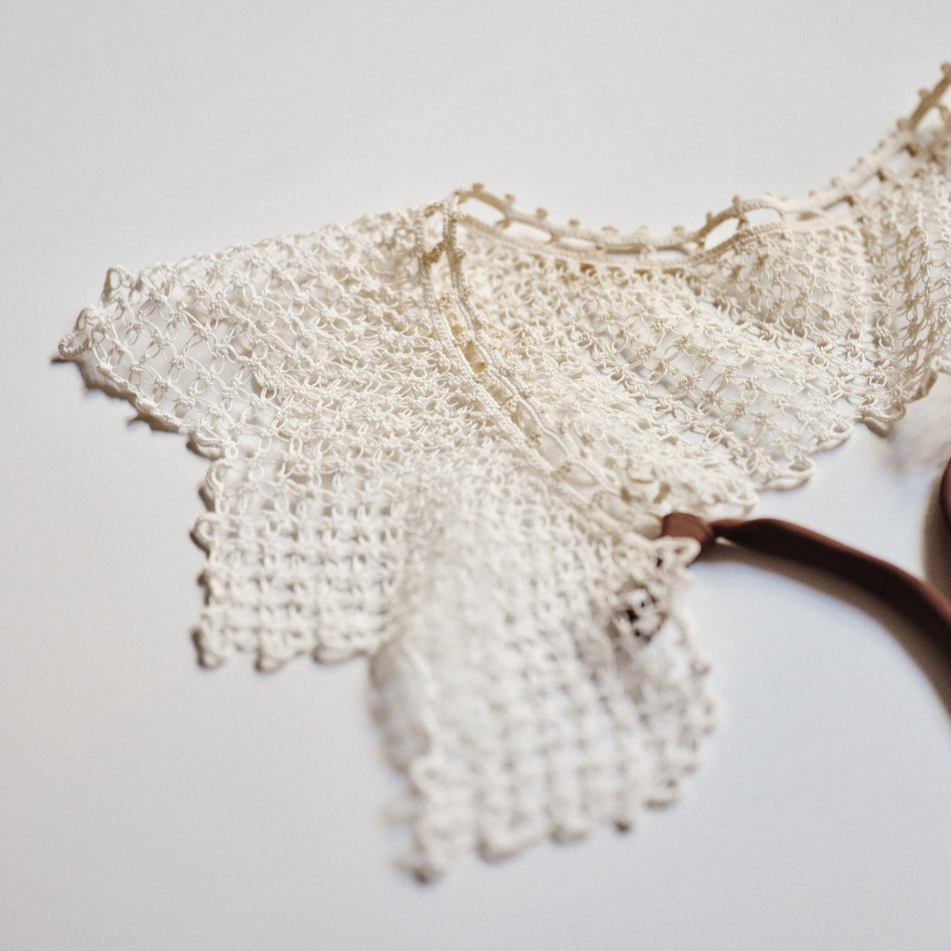 フランスのヴィンテージレースを使用した、スカーフストリング付きのつけ襟です。