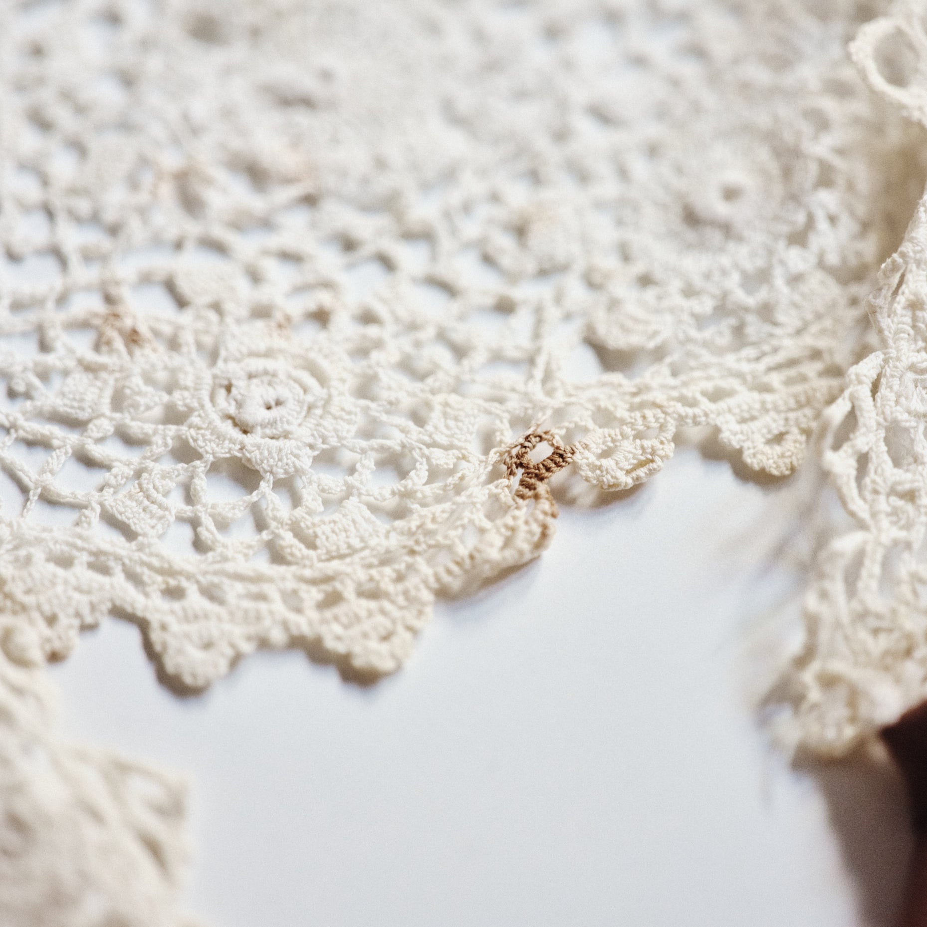ヴィンテージレースならではのやわらかな風合いと、一点一点異なる表情も魅力のひとつ。